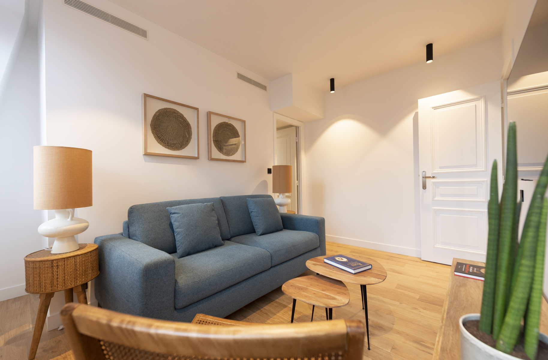 Situé au cinquième étage, vue sur la rue Lord Byron, cet appartement de 43 m2 dispose d’un salon avec cuisine ouverte, d’une grande chambre et d’une salle de douche. Offrant un cadre raffiné, cet appartement dispose d’objets d’art sélectionnés minutieusement.